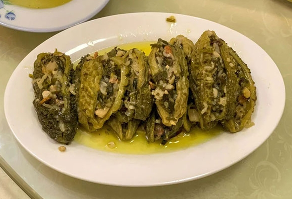苦瓜酿是信宜市贵子镇地区特色美食。苦瓜作为当地主要的特产,其烹饪方法多种多样,而最有特色的做法是用苦瓜制作成的苦瓜酿。其做法是将苦瓜洗净,切成段,去囊,然后把猪肉剁碎,加入香菇和适当调料做成猪肉馅,塞进苦瓜里,下油锅煎片刻后转砂锅加水小火慢炖。苦瓜酿甘而不苦,香而不腻,荤素相配,深受食客喜爱。