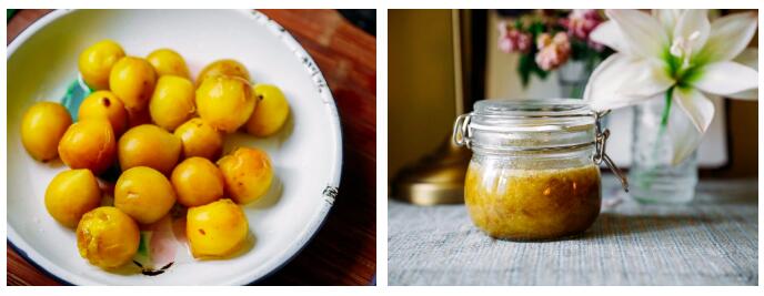 青梅果酱制作需准备青梅、白砂糖4:1的量,将洗净处理好的青梅倒进锅中放盐和水,用大火煮沸后转小火煮5分钟,梅子变黄以后捞出冷却并沥干水分,去除果核,果肉捣成泥,放入白砂糖后再倒入锅中加水大火煮沸,沸后转小火加入柠檬汁,熬至浓稠后倒出冷却,即可食用。