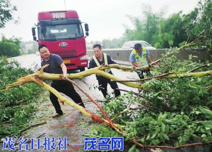 警民合力清路障保畅通。茂名晚报记者吴祖光 通讯员信交摄