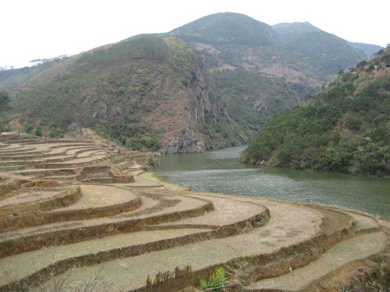 虎跳峡入囗头场滩,奇石千姿百态,悬崖峭壁绵延。江左岸有新娘桥,是凿石开成的栈道,沿山路前行,尺把宽的小径忽升忽降,上为突出的岩石遮盖,头顶绝壁,下临深渊,怪石镲峨,山脚壁立,直插江底。峡谷长约5公里,两面石壁如削,江面狭窄,有“小三峡”之称。虎跳峡杜鹃遍长山石中,漫山遍野,清明前后,春末夏初,桃李谢去,杜鹃红,据说虎跳杜鹃红似血,化作一抹殷红,染在花里,滴在蕊尖,它也向人们诉说着肉翼大王的悲壮!诉说新娘桥下的痴緾!这景色被称作虎跳鹃红。